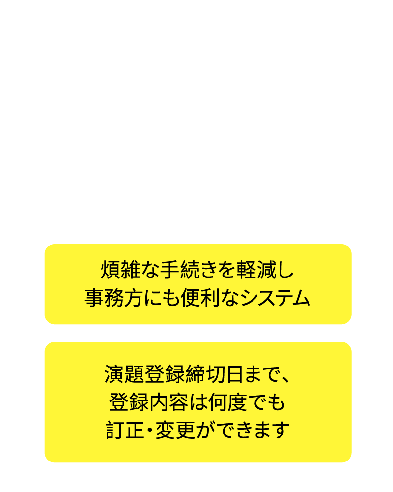 過去の抄録集作成の実績から学会担当者様へ便利でより使いやすい演題登録システムに生まれ変わりました。