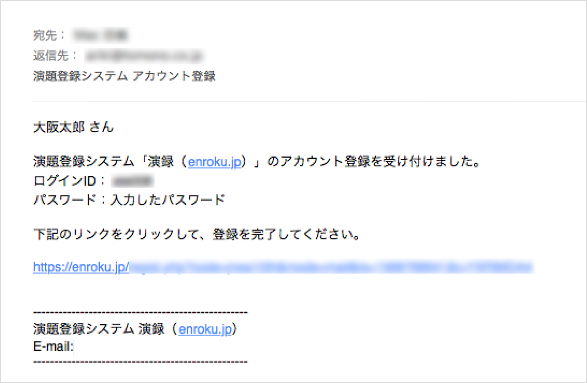 「ログインID」と「本登録用URL」が❸のメールアドレスへ送信されます