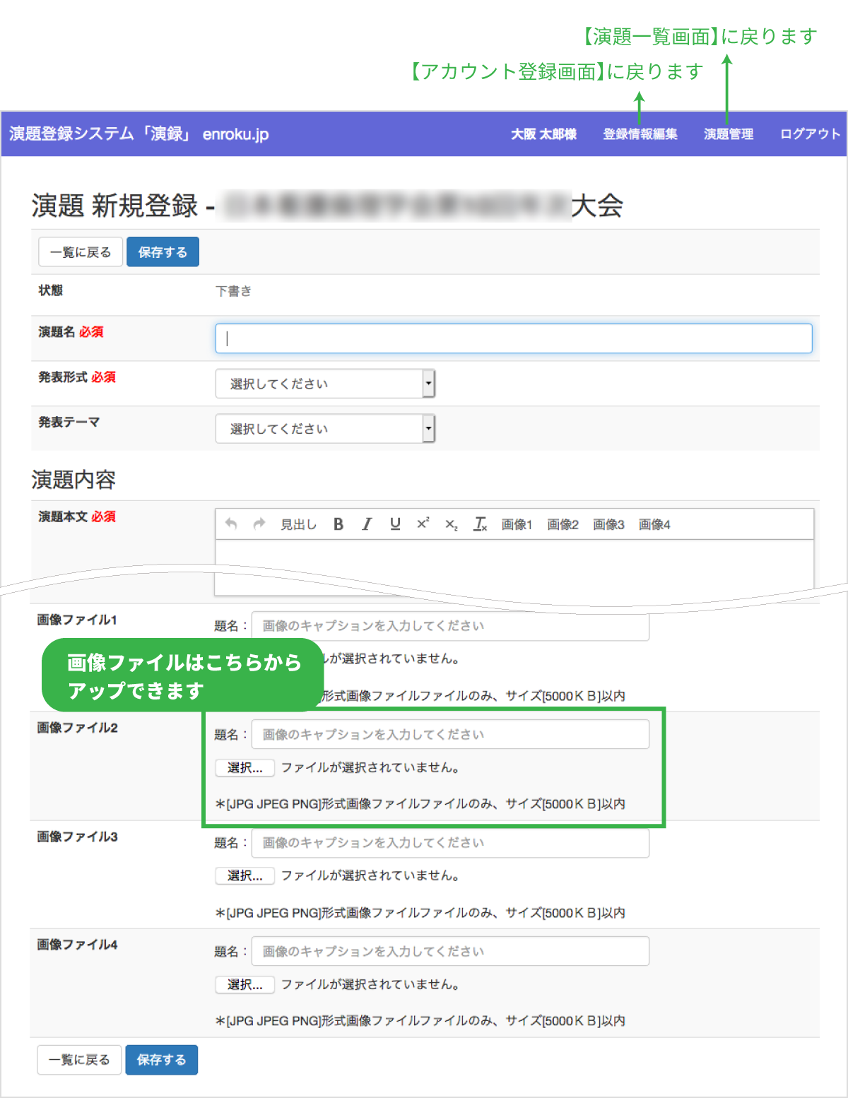 【演題一覧画面】+新規追加をクリックしてください