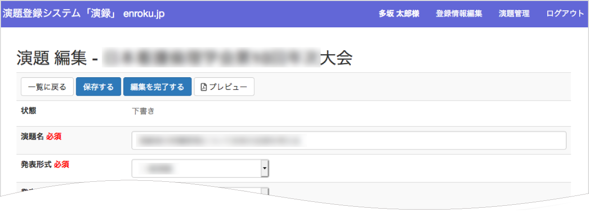 演題の登録が完了しましたら編集を完了するをクリックしてください